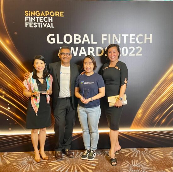 SC Ventures team celebrating our win at the Global Fintech Awards 2022