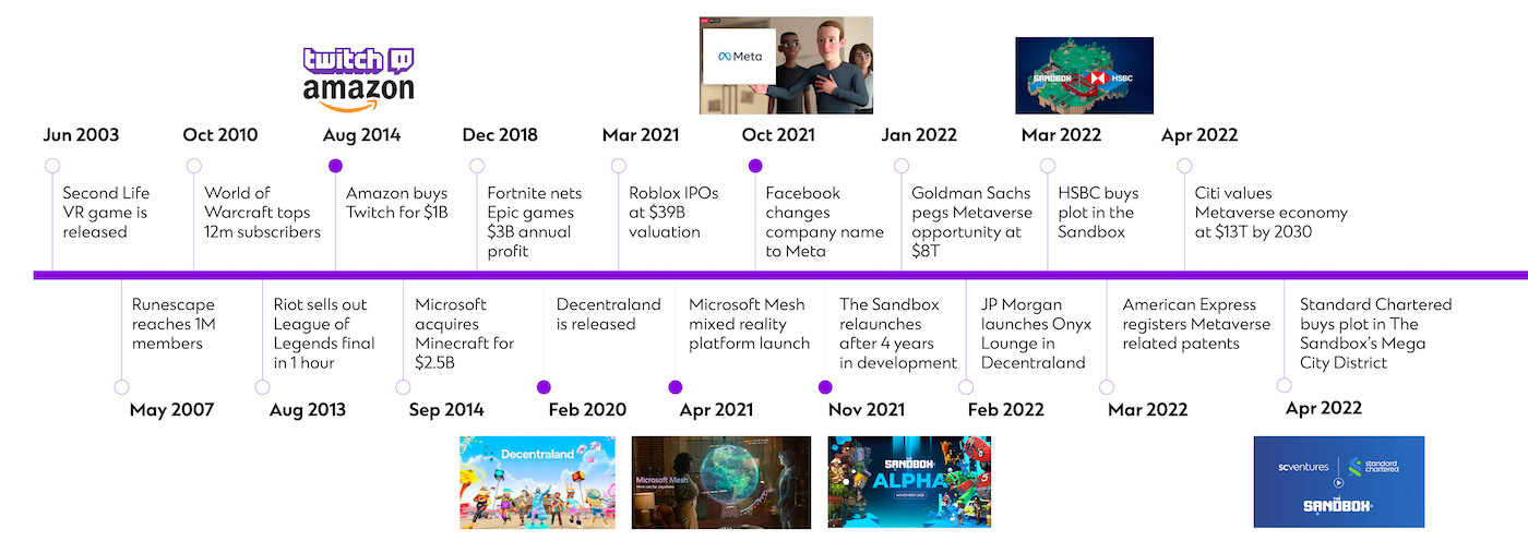 There will be no clean ‘Before Metaverse’ and ‘After Metaverse’, instead, it will emerge over time as different products, services, and capabilities evolve. This journey is unlikely to be linear, with the last 12 months representing a notable period of rapid acceleration.